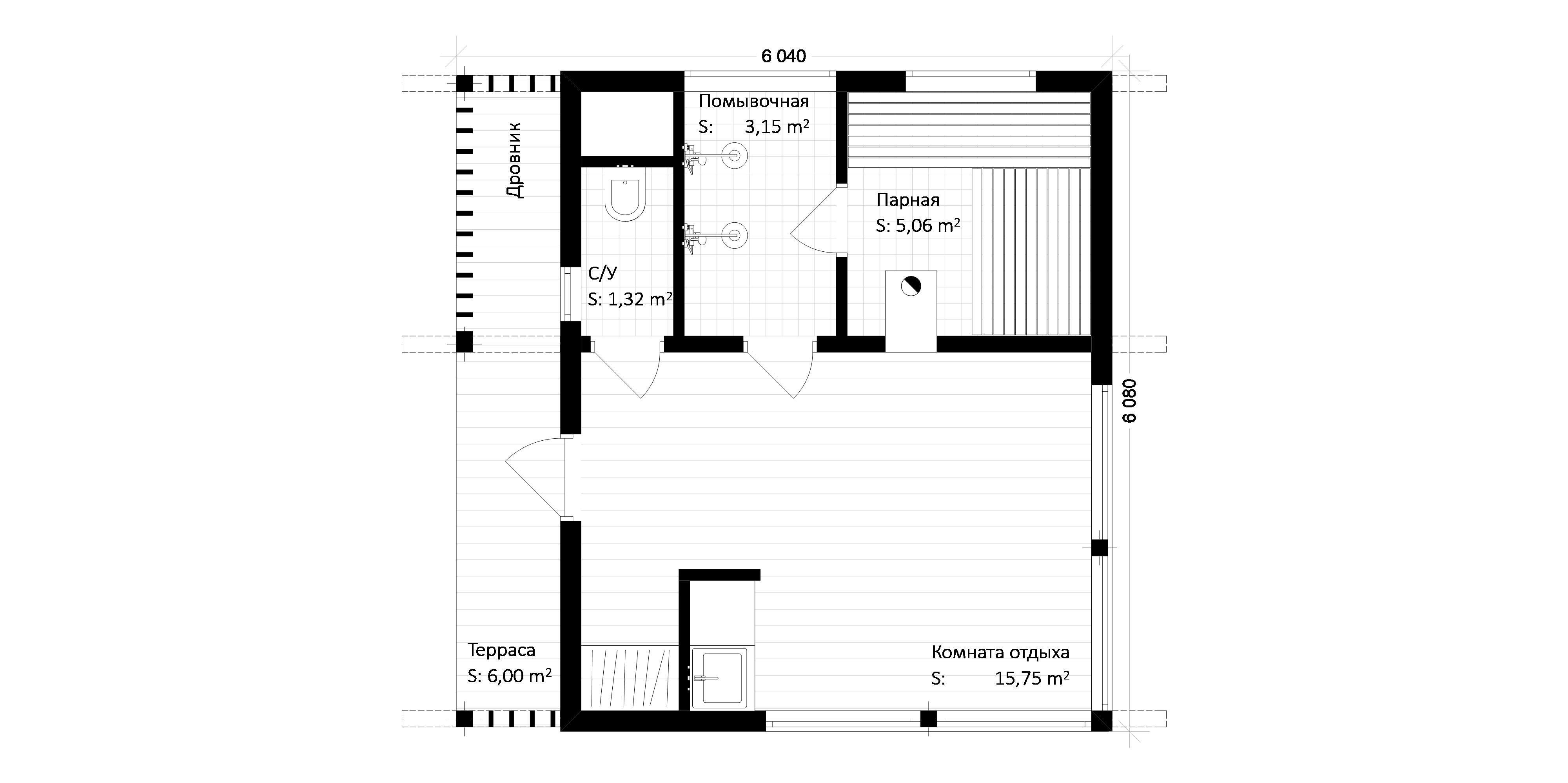 | Парная | Осиновая вагонка класс А. Теплоизоляция: фольга. Пологи: материал – осина, размеры – 30х90мм + спинка. Оснащение: отдушина размером 150х150 мм. Оборудование: экранированная кирпичом заводская печь «Ермак»; тип трубы: сэндвич. |